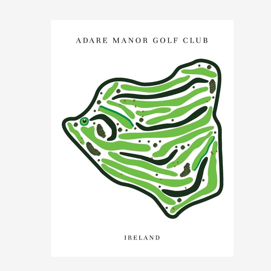 Celebrate the grandeur of Adare Manor Golf Club with this detailed golf map artwork. Located in County Limerick, Ireland, this world-class course blends historic estate grounds with championship-level design. The precise golf course map print clearly illustrates every hole. Therefore, it suits collectors, interior décor, and premium framed golf course prints.