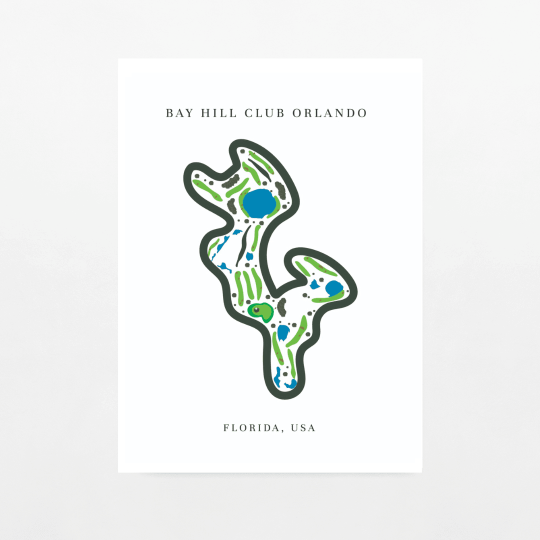 Display this stylish golf course map print to celebrate the legacy and beauty of Bay Hill Club Golf Course.