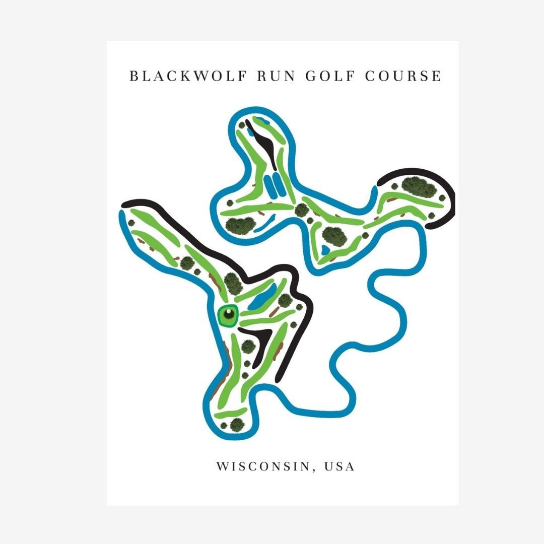 Blackwolf Run Golf Course, located in Kohler, Wisconsin, was designed by legendary architect Pete Dye and opened in 1988.It quickly gained fame for its challenging layout set along the Sheboygan River. The course hosted the 1998 and 2012 U.S. Women’s Open Championships. Blackwolf Run is part of the Kohler resort, known for luxury golf experiences.Today, it remains a premier destination for golfers and a favorite subject for golf map artwork.