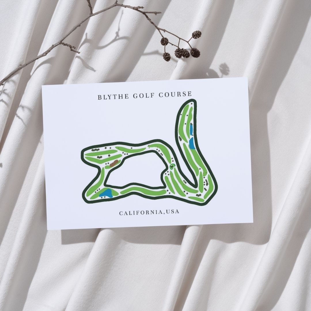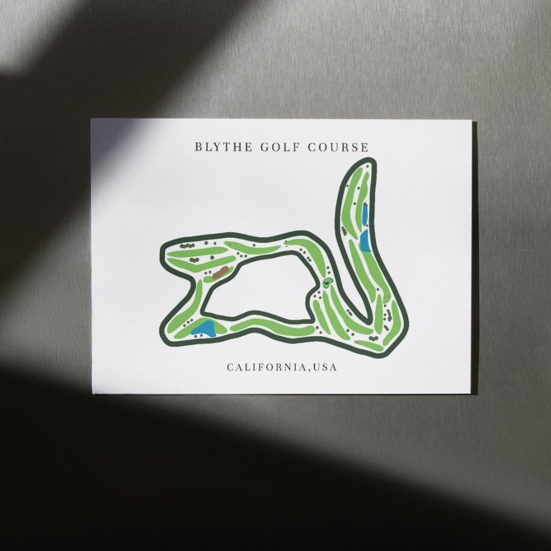 Experience the relaxed charm of Blythe Golf Course with this detailed golf course map print. Set near the Colorado River in California, the course offers wide fairways, desert scenery, and a straightforward layout. Because of its clean design, it appeals to collectors and décor lovers who want premium golf course prints.
