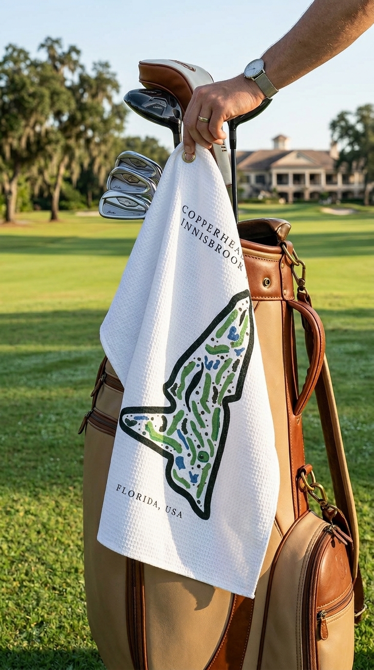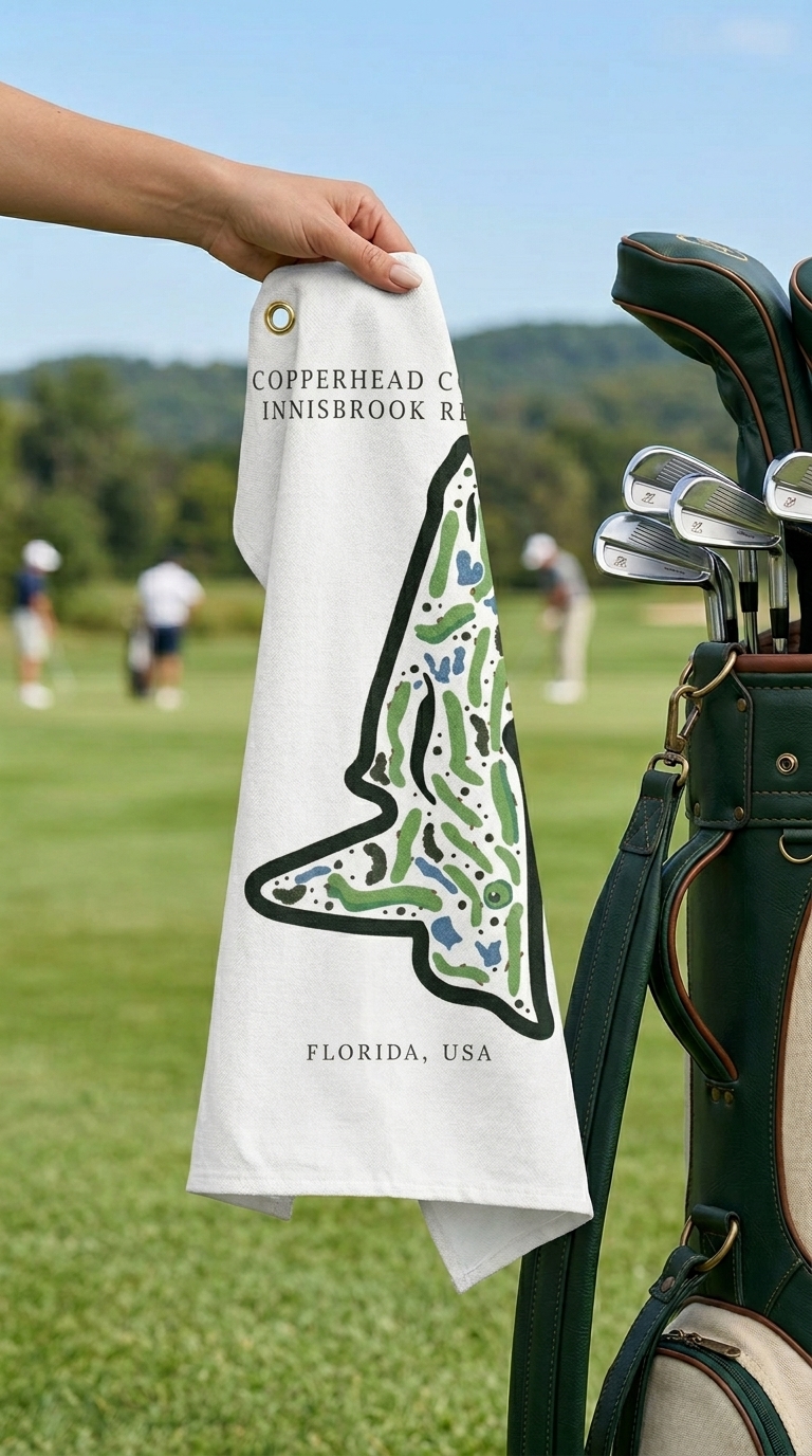 Bring the challenge and championship feel of the Copperhead Course at Innisbrook Resort into your game with this golf course print towel, designed for performance and everyday use.