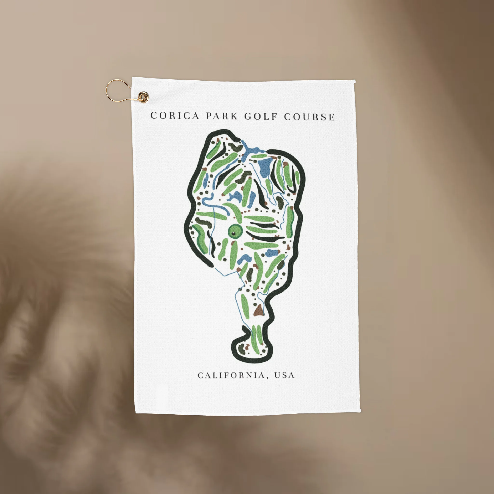 Celebrate the beauty of Corica Park Golf Course with this premium golf towel, inspired by the scenic and historic course in California. Known for its tree-lined fairways, rolling greens, and elegant parkland layout, Corica Park offers golfers a memorable and challenging experience. This high-quality microfiber towel features a detailed, full-color print of the course layout, capturing signature holes, picturesque landscapes, and the natural charm that makes Corica Park a favorite among golfers. It serves as both a functional on-course accessory and a collectible keepsake.