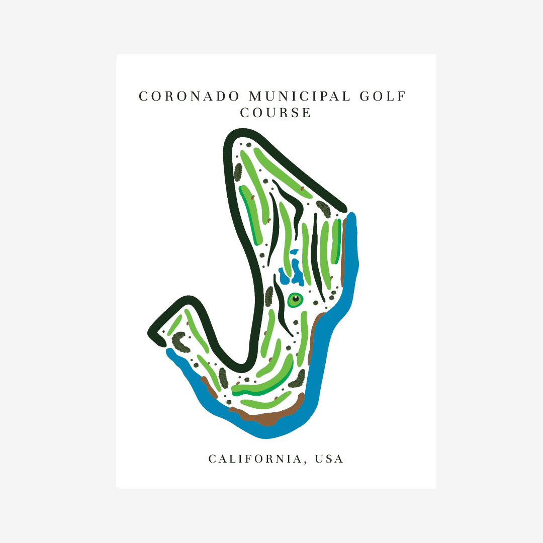 Bring the charm of Southern California golf to your walls with this elegant Coronado Municipal Golf Course print. Located near San Diego Bay, this public course is known for its scenic views, palm-lined fairways, and welcoming atmosphere. This golf course map print captures the layout in stunning detail, highlighting the tranquil design and iconic surroundings.