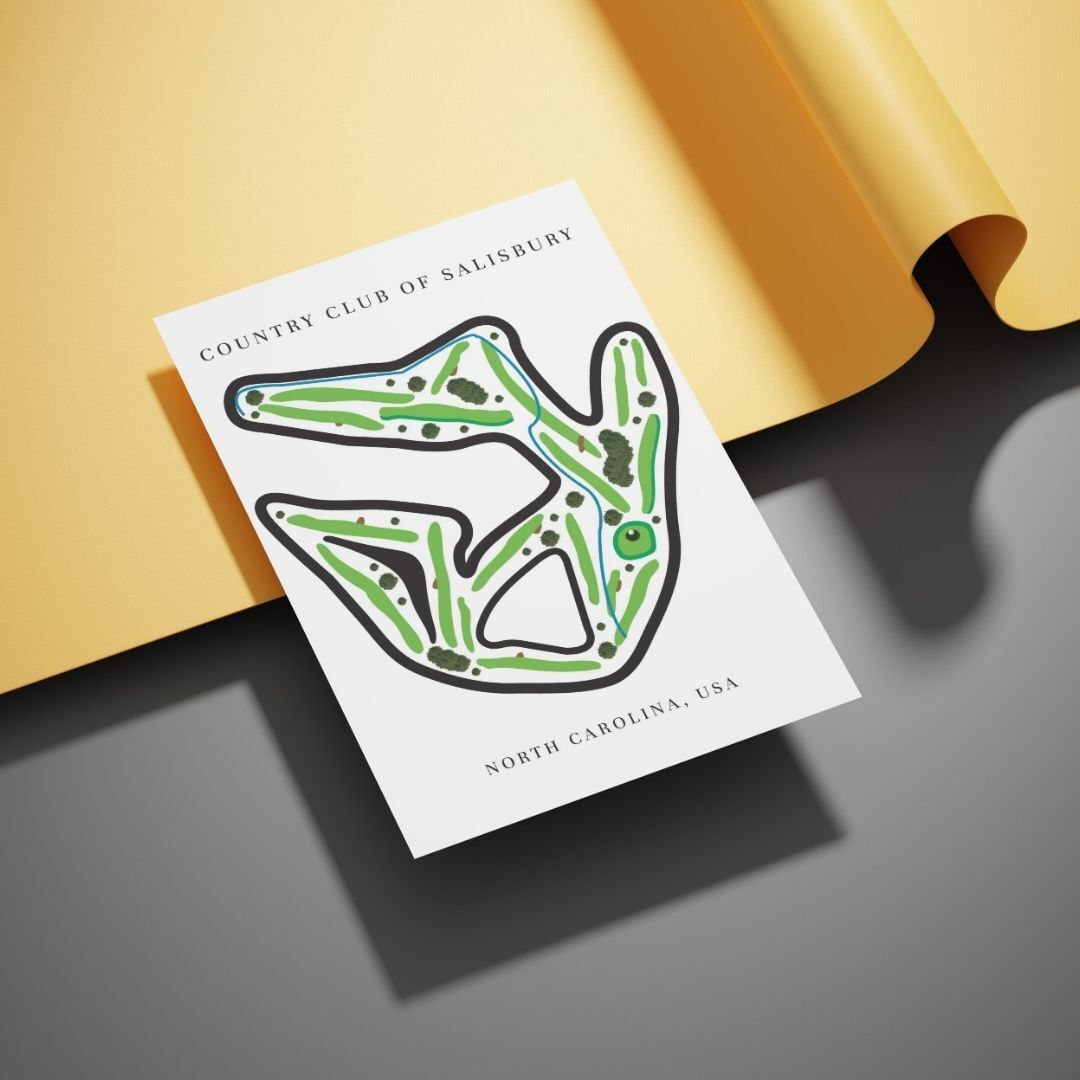 Celebrate your passion for golf with this stunning Country Club of Salisbury Golf Course Prints, North Carolina, Golf Map Artwork Located in scenic North Carolina, this course blends natural beauty with thoughtful design. This detailed golf course layout print showcases the full course with accuracy and elegance.