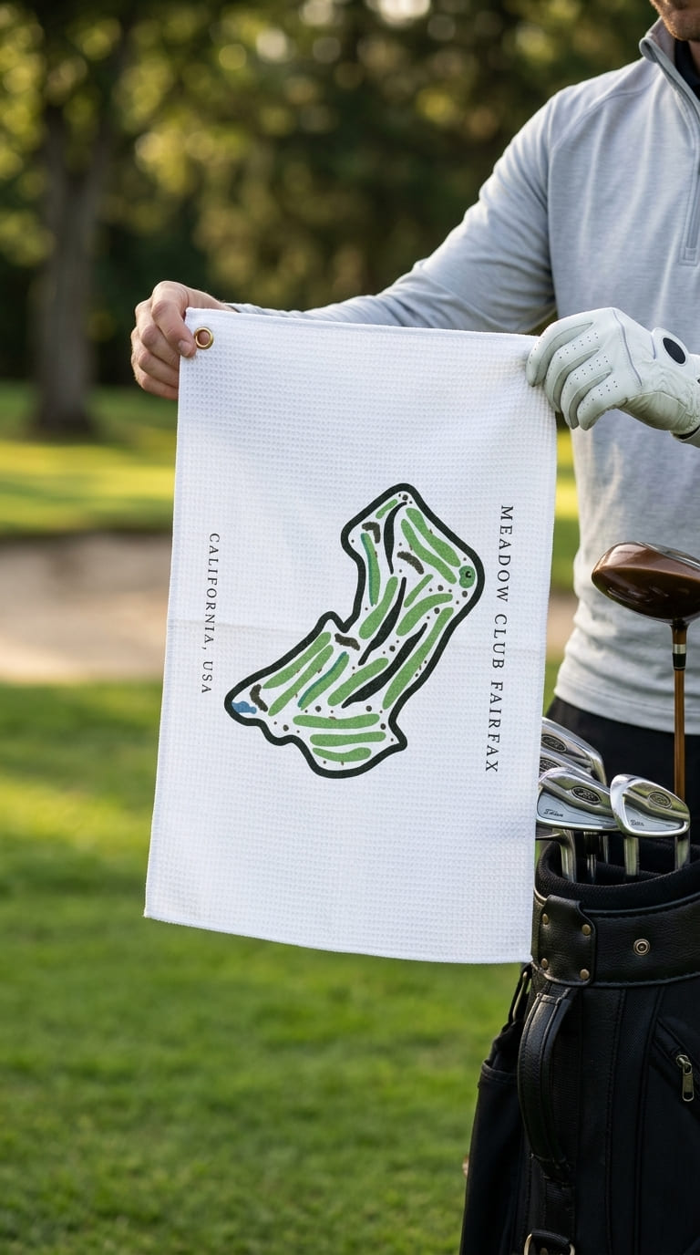 Enhance your game with our Meadow Club Fairfax Golf Course Print Towel, blending luxury, durability, and design. Whether wiping down clubs, hands, or golf balls, this towel reflects the elegance and tradition of one of California’s most respected private courses. The vivid, full-color print brings the course to life — making it an ideal gift for golfers, collectors, and Northern California golf enthusiasts.