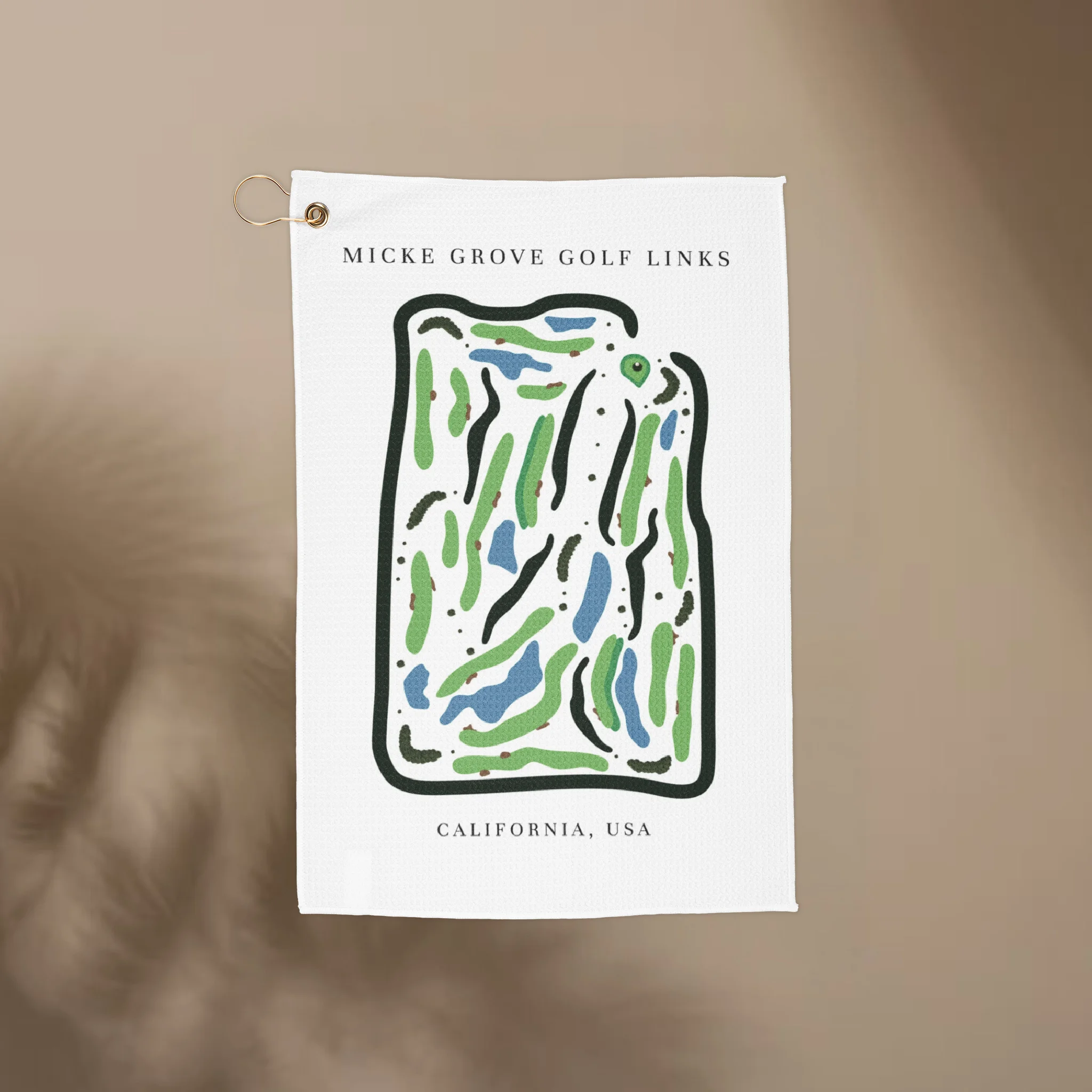 Perfect for on-course use or display, this golf course print towel embodies the timeless appeal of Micke Grove Golf Links — where natural beauty and thoughtful course design meet perfectly.