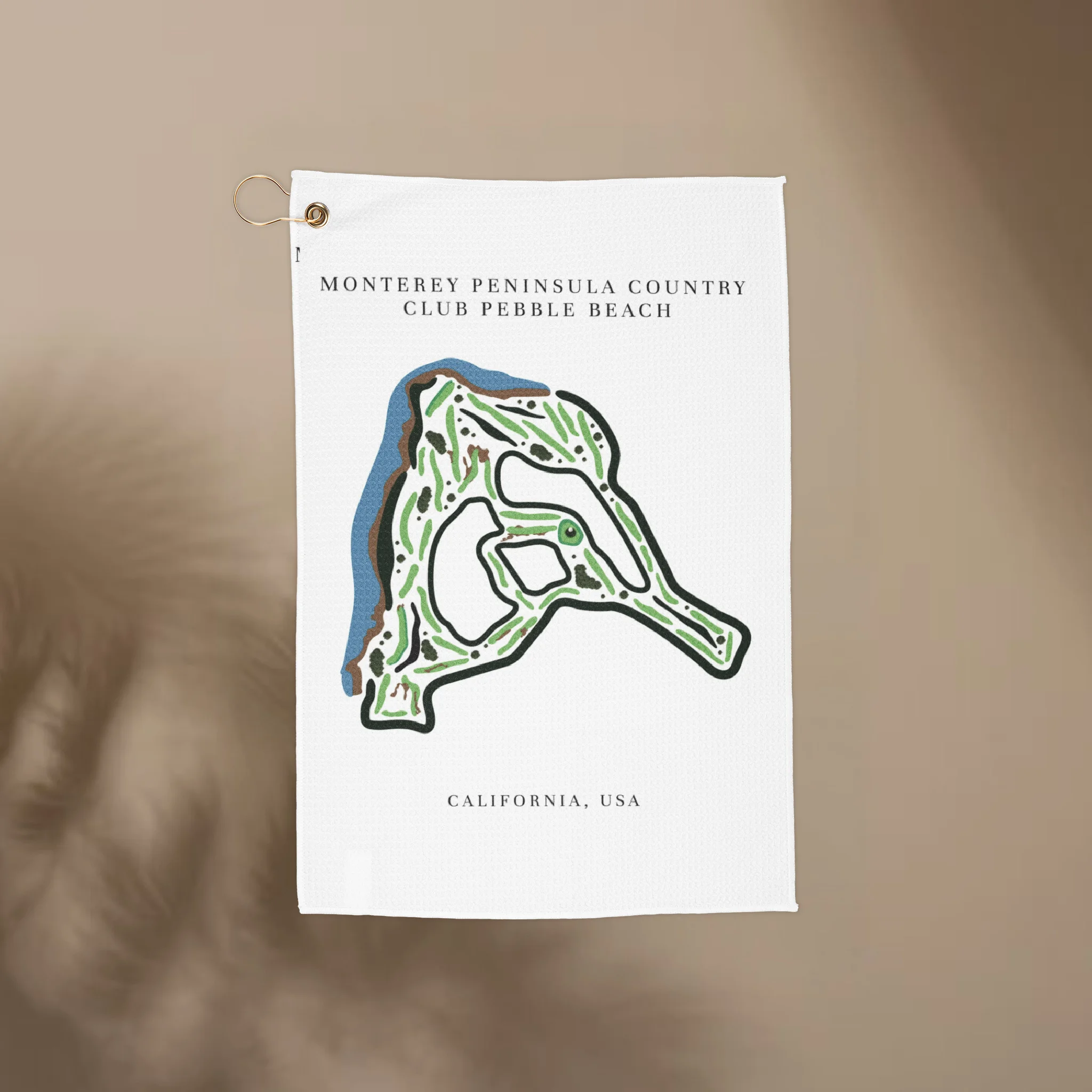 Shop the Monterey Peninsula Country Club Golf Course Print Towel, inspired by the prestigious coastal courses in Pebble Beach, California — a legendary destination known for its breathtaking views and world-class golfing heritage. This premium microfiber golf towel captures the iconic layout of Monterey Peninsula, including rolling fairways, dramatic cliffs, and the pristine greens that make it a Northern California treasure. Designed for golfers who value elegance, precision, and tradition, it’s both a functional accessory and a collectible keepsake.