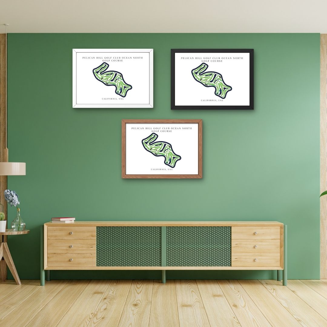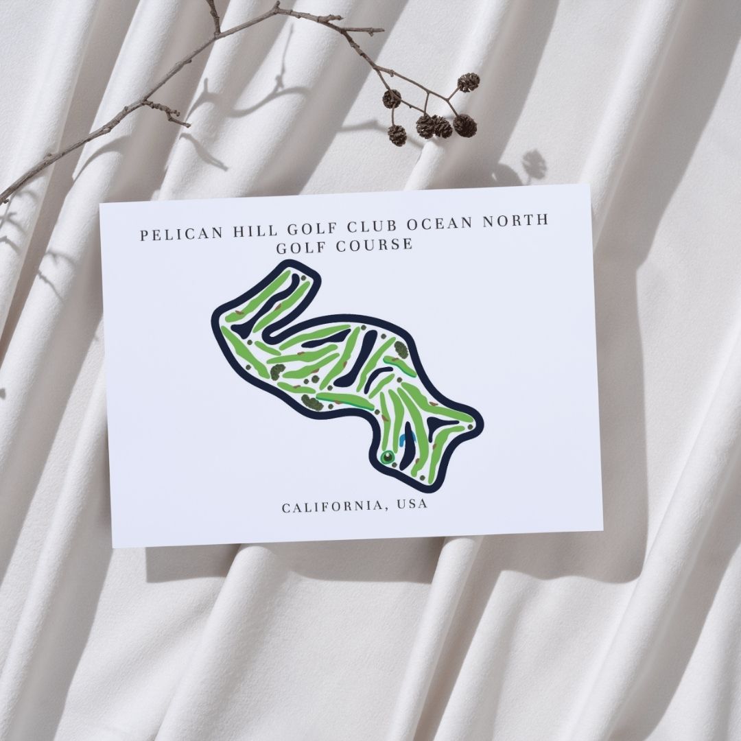 Capture the coastal elegance of Pelican Hill Golf Club Ocean North Course with this detailed golf map artwork. Nestled along the stunning California coastline, this course combines sweeping ocean views with a championship-level design. The precise golf course map print highlights each hole’s strategic layout. Therefore, it is an excellent choice for collectors, décor enthusiasts, and anyone seeking premium framed golf course prints.