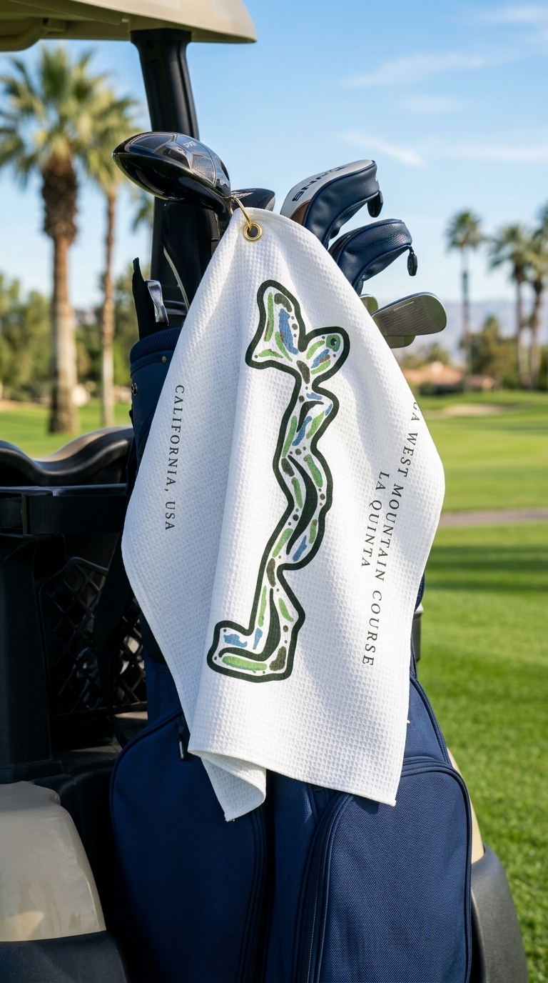 Perfect for on-course use or display, this golf course print towel captures the timeless appeal of PGA West Mountain Course — where strategy, challenge, and desert beauty converge.