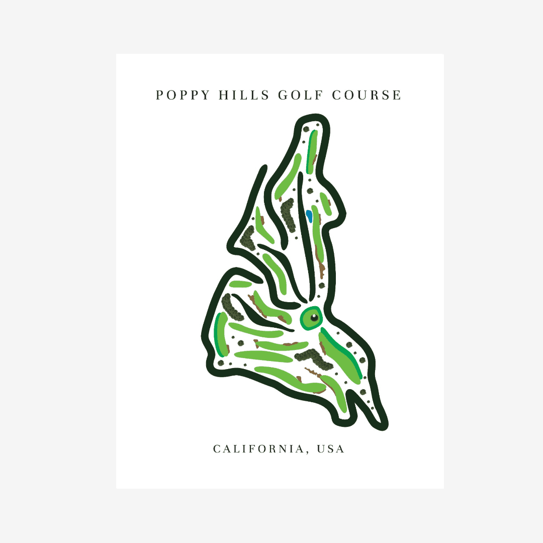 Celebrate the natural beauty and strategic design of Poppy Hills Golf Course with this stunning golf course map print. Located in the heart of Pebble Beach, California, Poppy Hills is known for its forest-lined fairways, smooth elevation changes, and eco-friendly layout. This artwork captures the full golf course layout, making it a must-have for golf lovers, collectors, and fans of California’s scenic golf destinations.