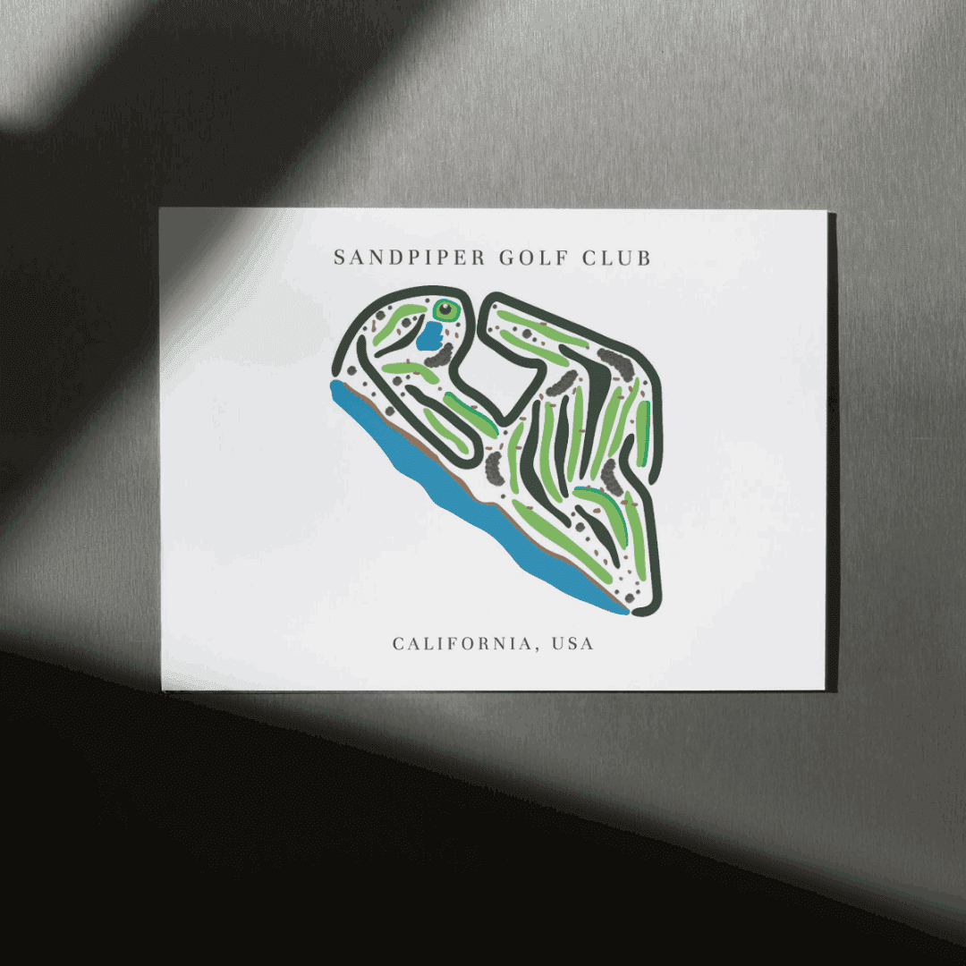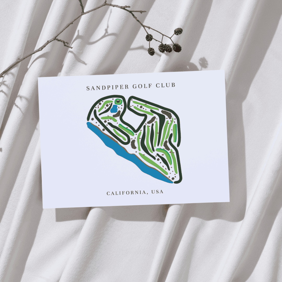 Bring the beauty of the California coast into your home with this stunning Sandpiper Golf Club. Located in Santa Barbara, Sandpiper Golf Club is famous for its ocean views, rolling fairways, and peaceful setting. This artwork beautifully captures the entire layout of the course, making it a perfect choice for golf lovers, collectors, or anyone who appreciates classic course design.