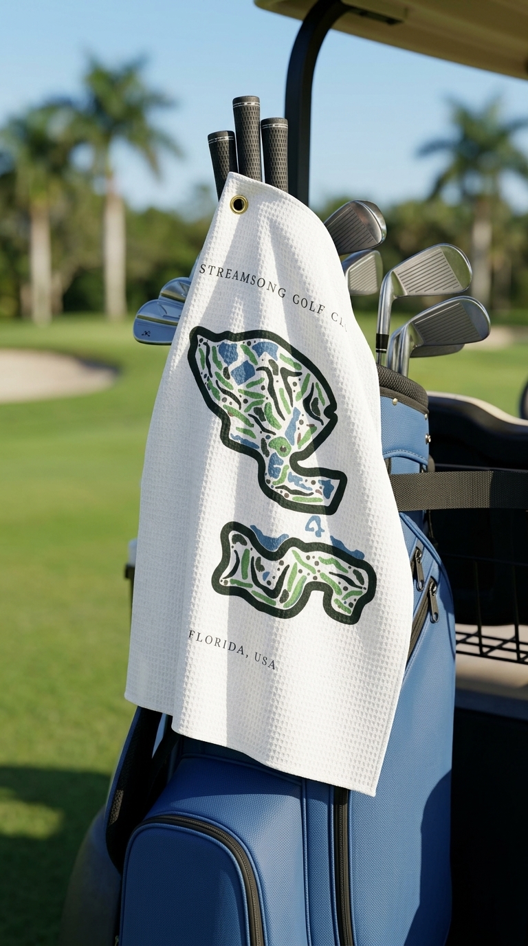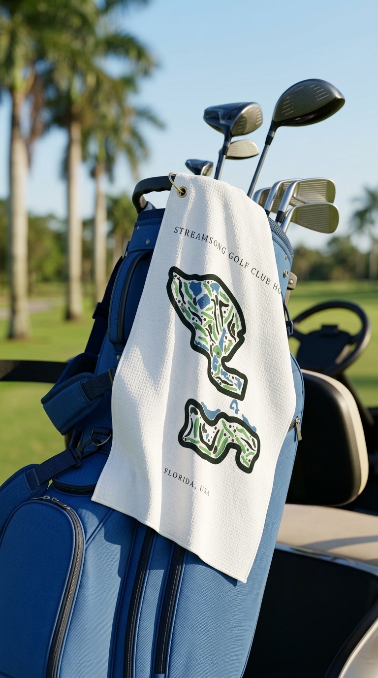 Upgrade your golf gear with the Streamsong Golf Resort Print Towel. It is perfect for golfers, collectors, or gifting. Use it on the course or display it as part of your golf collection.