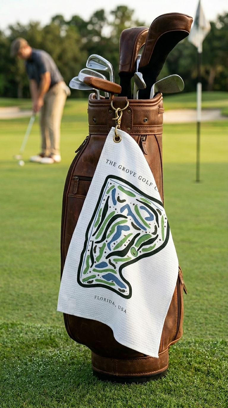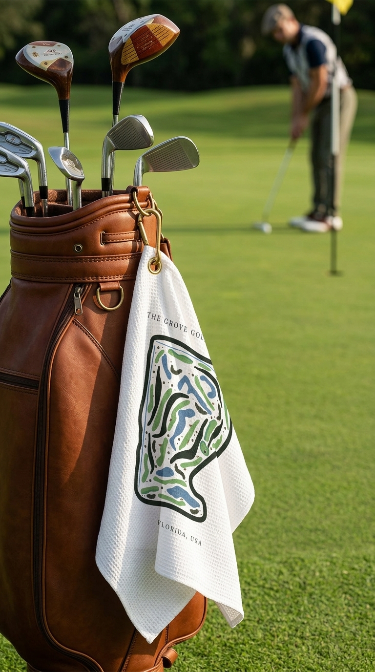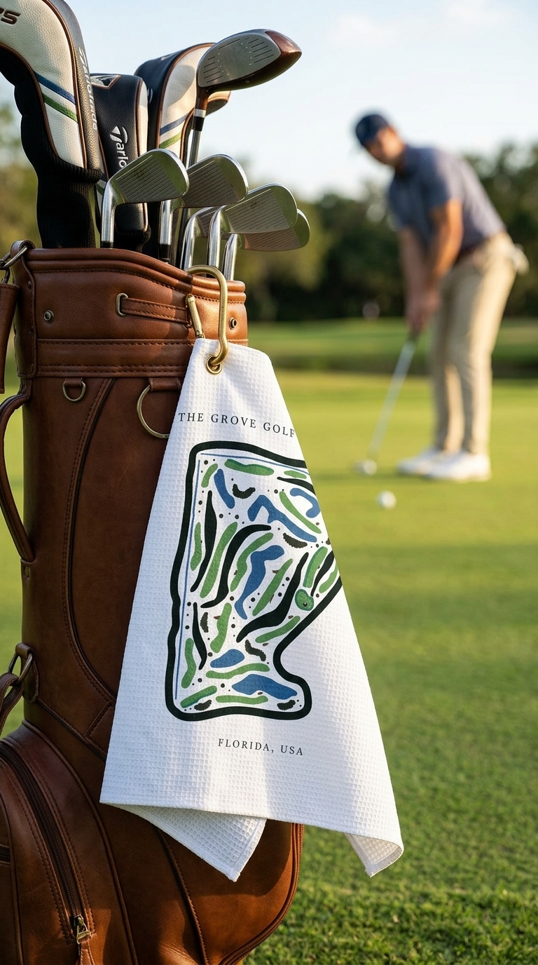 Bring the elegance and challenge of The Grove Golf Club XXIII into your golf game with this golf course print towel, built for both performance and style.