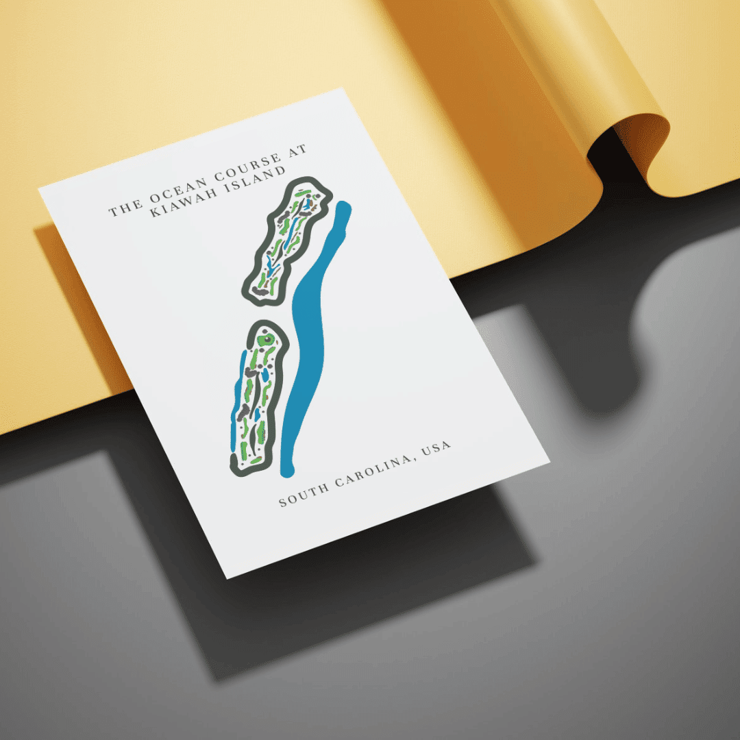 Display this exquisite golf course map print to honor the challenge and beauty of The Ocean Course at Kiawah Island.