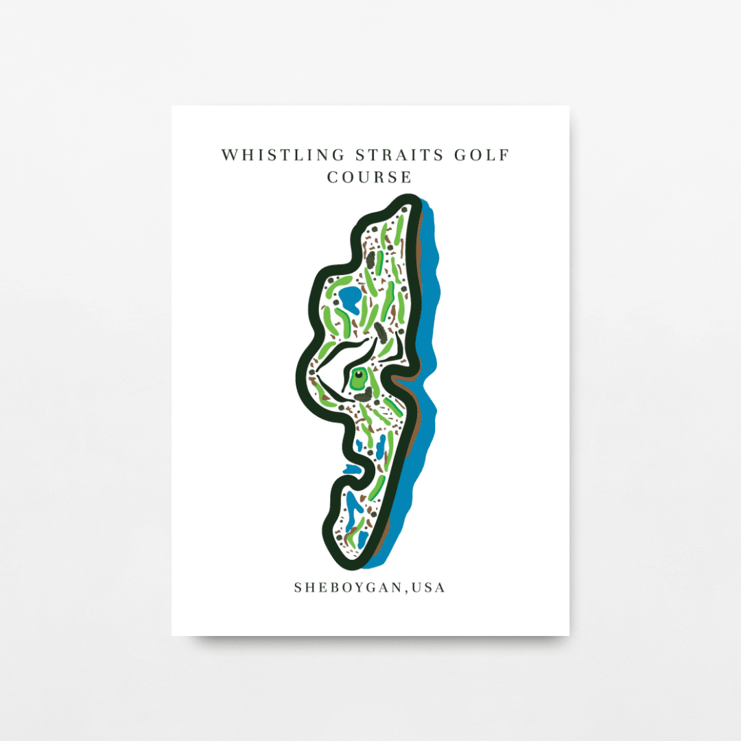 Bring a piece of legendary golf history into your home with this elegant Whistling Straits Golf Course print. Known for its dramatic Great Lakes shoreline and windswept dunes, this golf course map print is perfect for fans of world-class design and competition.